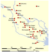 The cities of original Sumer, Akkad and Babylon were unequalled in any other civilization at the time of their flourishing. And these first cities and temples in the post-Deluge epoch were situated in almost linear fashion in Mesopotamia, in what is now modern day Iraq, beginning at the southern tip besides the Persian Gulf and moving north-westwards in time up along the ‘path’ laid out between the two rivers (as mentioned in Genesis in the Garden of Eden; the Tigris and Euphrates).