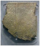 (left) original Akkadian tablet XI of the epic of Gilgamesh, detailing the story of the Flood.
