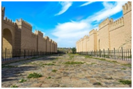 (left) Babylon streets surviving to today, featuring brick walls with tiled designs;